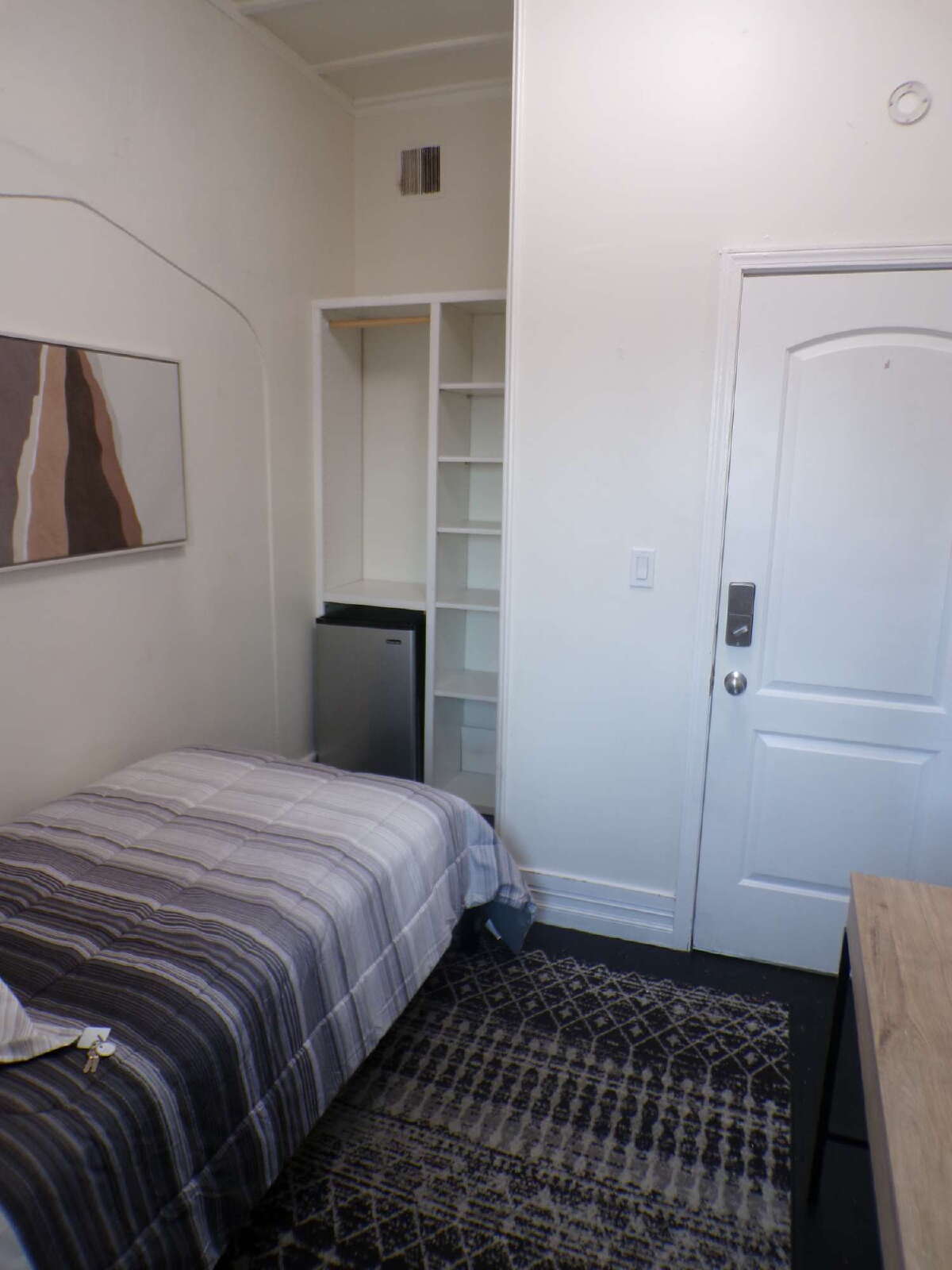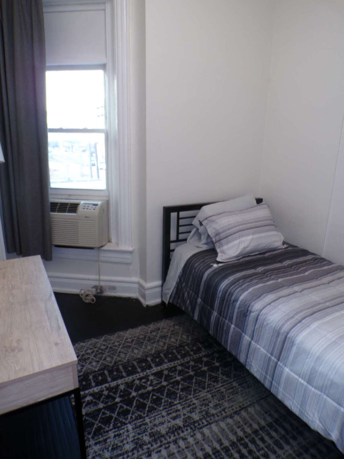 New Single Bed, frame, pillows, and comforter for a cozy place to rest.